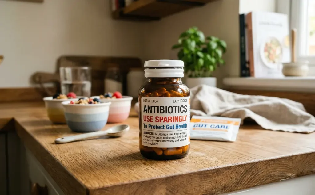 To protect your gut, use antibiotics only when necessary and prescribed by your healthcare provider. If you must take antibiotics, consider taking a probiotic supplement afterward to restore the balance of good bacteria in your gut.