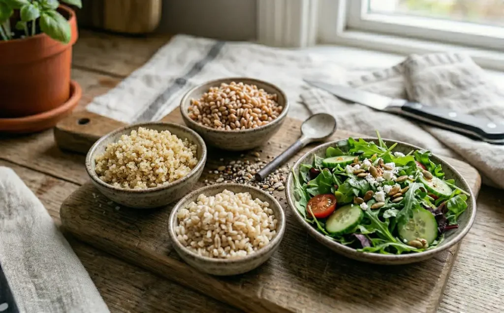 Whole grains such as quinoa, brown rice, and oats provide complex carbohydrates that are digested more slowly than refined grains. This slow digestion helps prevent spikes in blood sugar. Whole grains are also high in fiber, which aids in digestion and keeps you feeling full for longer.