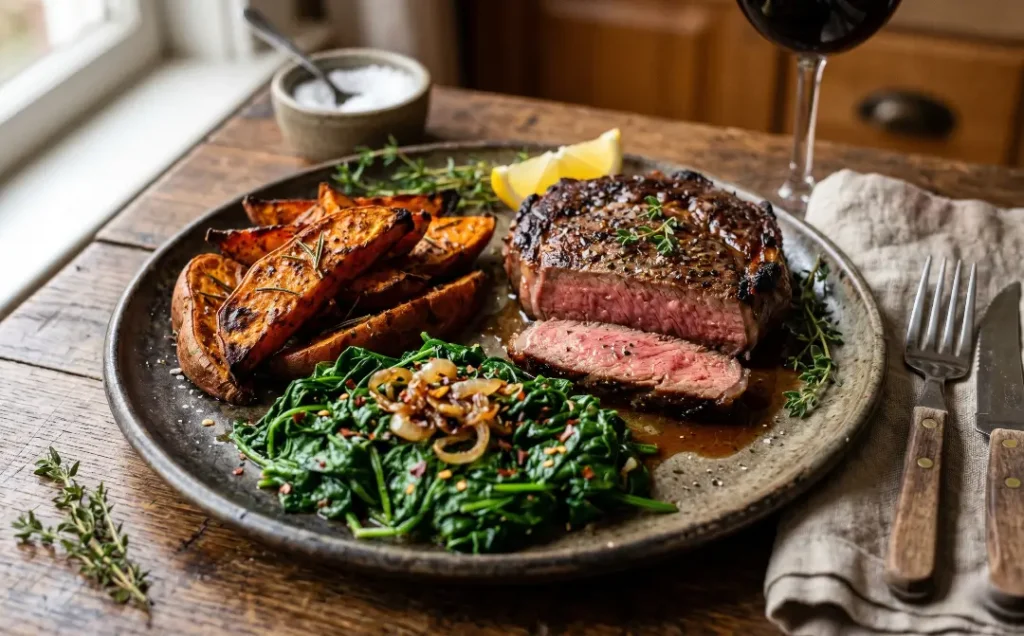 2. Beef Steak with Sweet Potato and Spinach