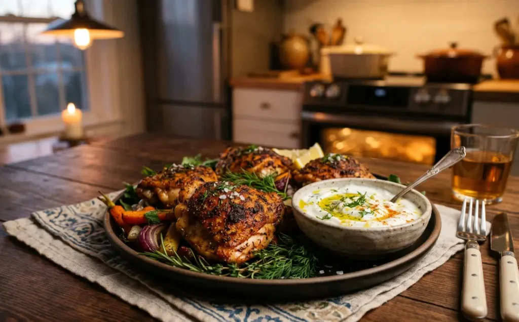 11. Baked Chicken Thighs with Yogurt Dip