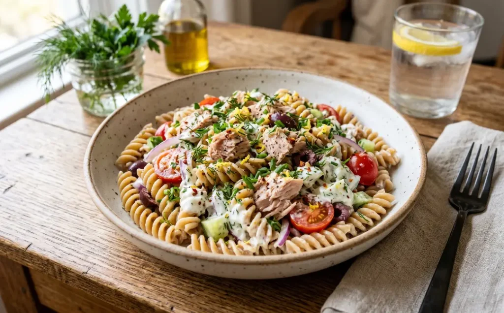 6. Tuna Pasta with Greek Yogurt Dressing