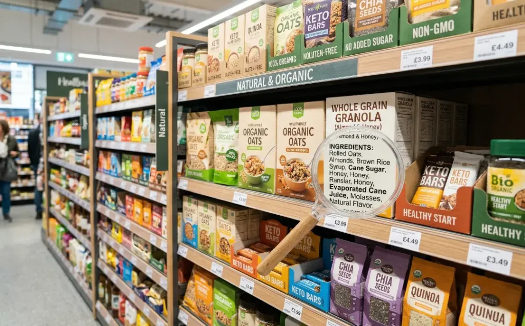 These labels do not always mean low sugar. Many products use them as marketing tools while still containing added sugars.