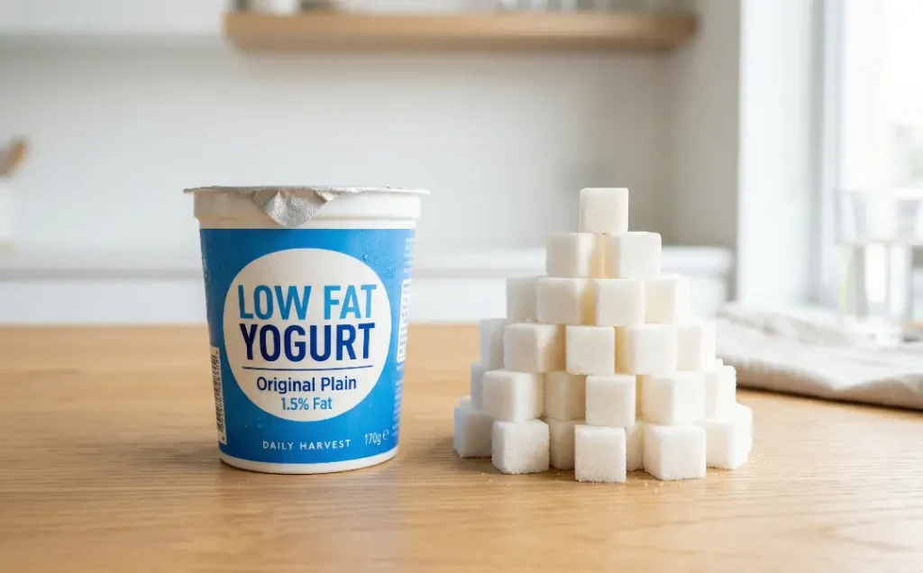 Tip: Compare regular and low fat versions. Sometimes the regular option has less sugar.