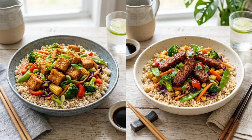 Use the velveting technique for protein. If you are adding tofu or tempeh, marinating it briefly in a mixture of soy sauce and cornstarch before cooking creates a silky, restaurant-quality coating.