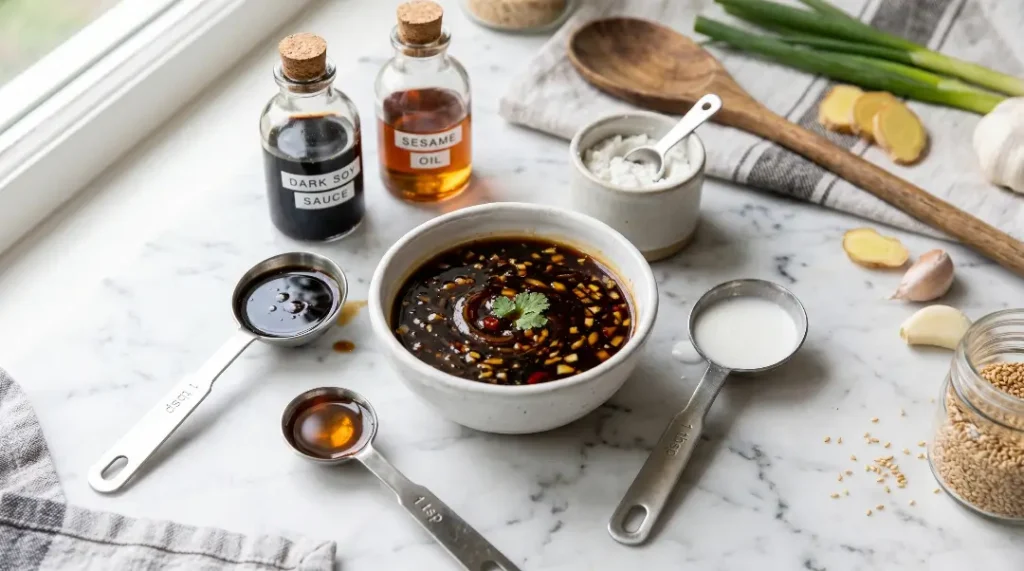 3 tablespoons of low-sodium soy sauce (or tamari for a gluten-free option) 1 tablespoon of oyster sauce (use vegetarian oyster sauce or hoisin sauce for a fully plant-based version) 1 tablespoon of rice vinegar 1 teaspoon of sesame oil 1 teaspoon of cornstarch 1 teaspoon of sugar or honey 2 tablespoons of water Optional: 1 teaspoon of chili garlic sauce or sriracha for heat