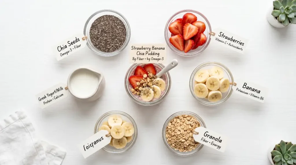 What makes chia pudding stand out from other breakfast options is its nutrient density. A small serving of chia seeds packs an impressive amount of omega-3 fatty acids, calcium, phosphorus, magnesium, manganese, and protein. Combined with the antioxidant-rich strawberries and the potassium-loaded bananas in this recipe, you are essentially creating a nutritional powerhouse in a glass or jar.
