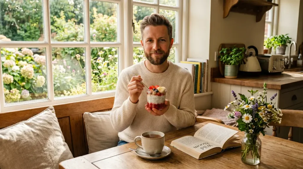 This nutritional profile makes it a genuinely balanced meal, providing sustained energy without blood sugar spikes, largely thanks to the exceptional fiber content of chia seeds working to slow digestion and keep you feeling full for hours.