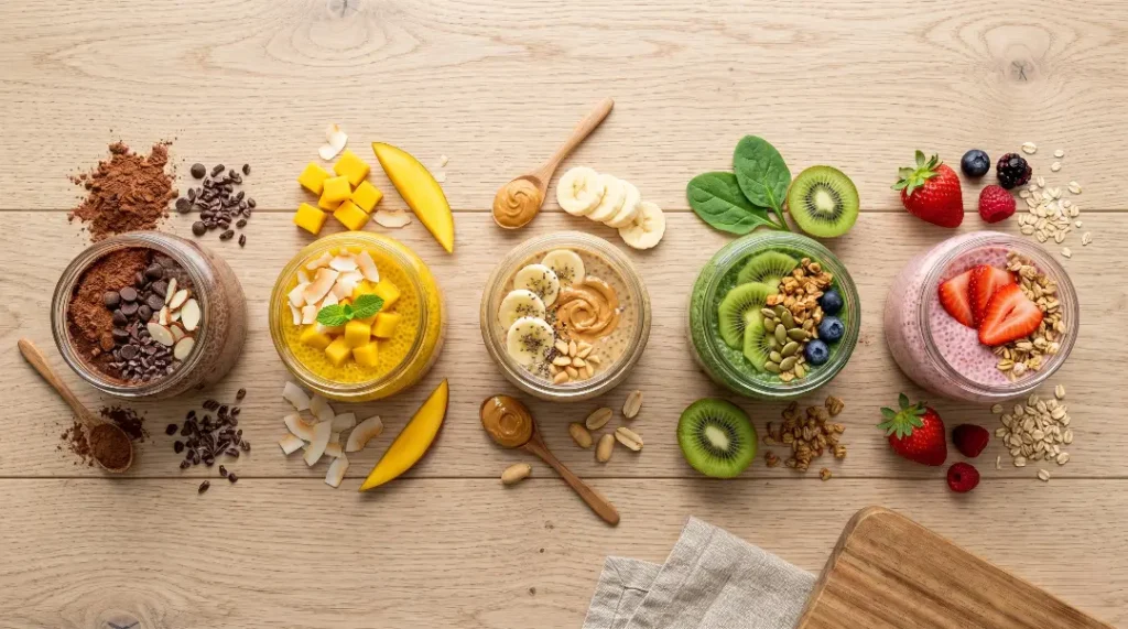 To prep 5 servings at once, simply multiply all ingredient quantities by 5 and prepare the chia base in a large mixing bowl. After the second stir, divide the pudding evenly into 5 individual jars or airtight containers. Cover tightly and refrigerate.