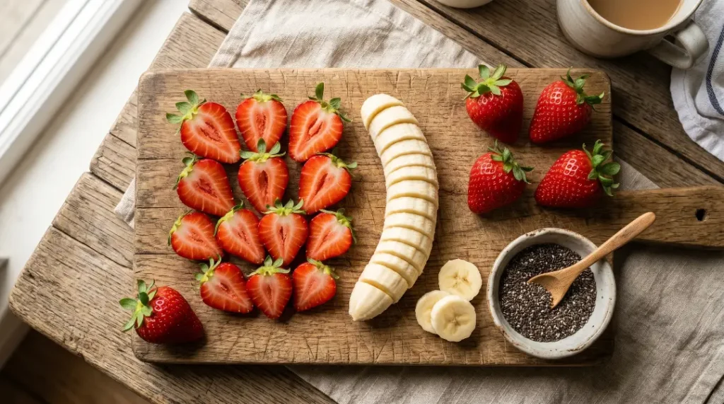 From a nutritional standpoint, this duo is also a great example of complementary nutrition. Strawberries are rich in vitamin C, which enhances the absorption of the non-heme iron found in chia seeds. Bananas provide fast-acting carbohydrates and potassium, which support muscle function and energy levels. When you combine both with chia seeds, you get a meal that works with your body, not against it.